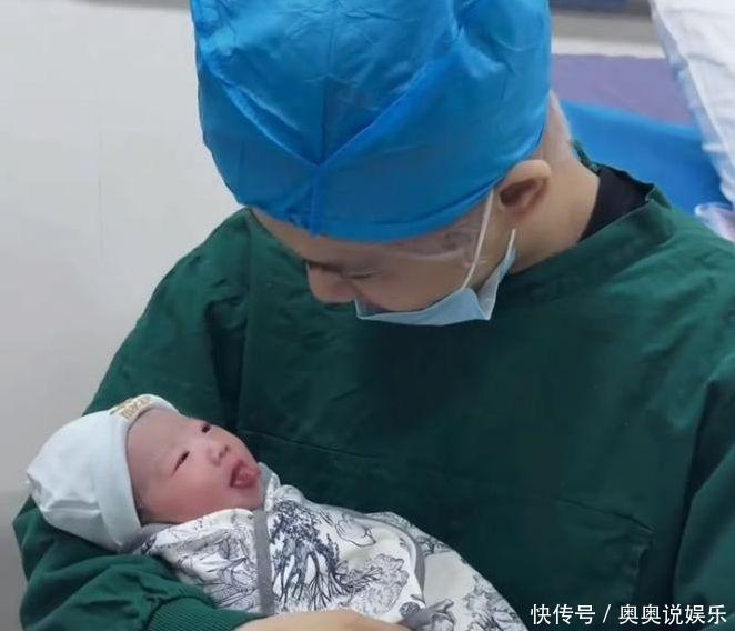 鹿哈身穿绿色的手术服装,头上戴这蓝色的手术帽,他以一种温柔的姿态弯腰接近病床。一手轻柔地支撑着兔子,另一手则谨慎地注视着女儿,他们的眼中充满了深深的关心和宠爱。襁褓中的小宝贝小脸粉嫩,眼睛紧闭,安静地睡着。