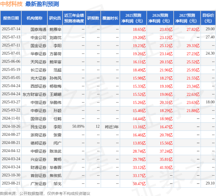 最新盈利预测明细如下: