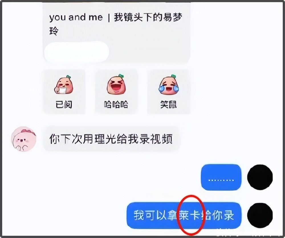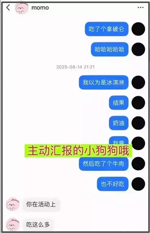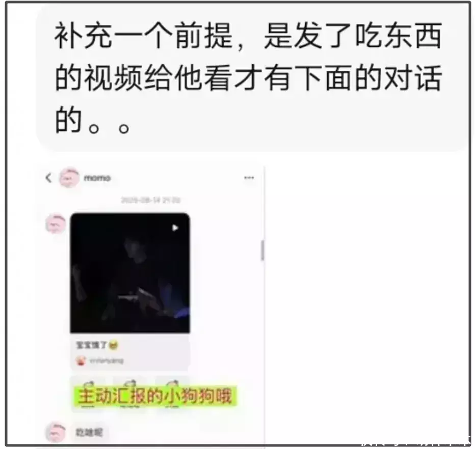 看聊天记录,对方直接发了一个王一博在晚宴上吃东西的视频给号主,问他吃啥呢?他直接就回答说自己吃了一个拿破仑,以为是冰淇淋,结果吃到嘴里发现是奶油,还有不好吃的牛肉。
