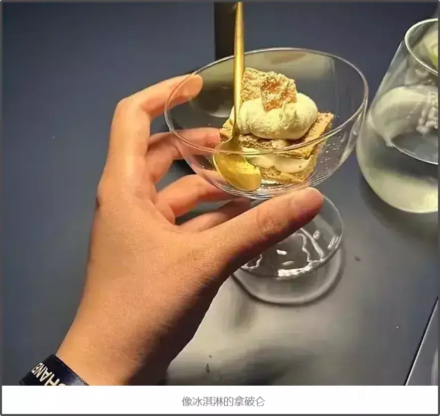 这和王一博参加晚宴的菜品也对上了,因为灯光昏暗,拿破仑又是用杯子装的,确实容易看错成冰淇淋。