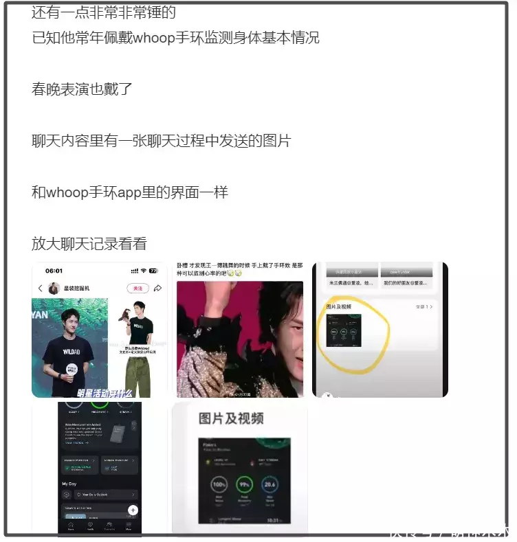 还有几个细节被网友认为最锤,一是曝光的录屏里有一个运动手环APP的界面,和王一博的运动手环是同款。粉丝还特地科普过,这个手环有多么特殊,又是要订阅又是偏向专业运动检测的,能随时监测身体健康,很像小情侣之间互相监督的把戏。